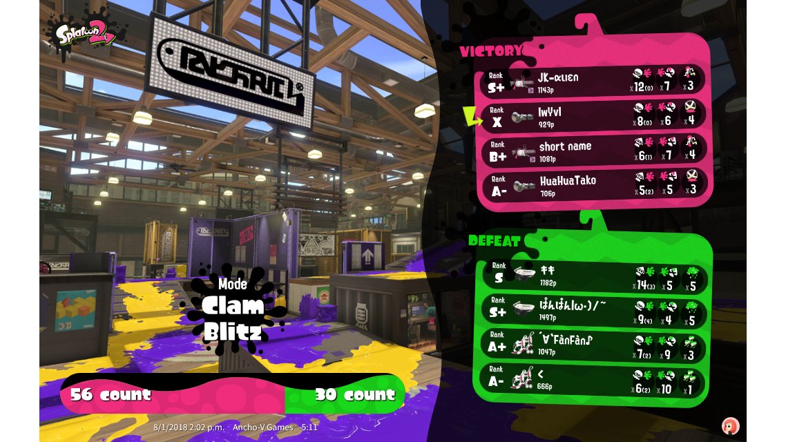 | SplatNet Battle # | 5,631 | |||||||||||||||||||||||||||||||||||||