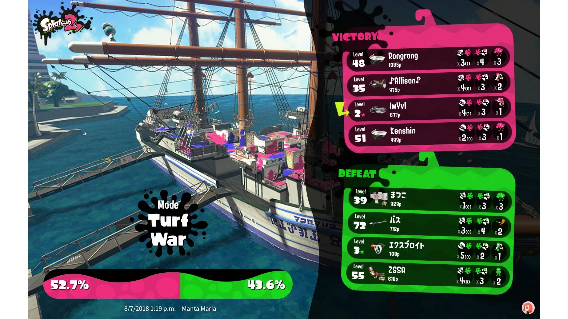 | Mode | Turf War - Regular Battle | ||||||||||||||||||||||||||||||||||