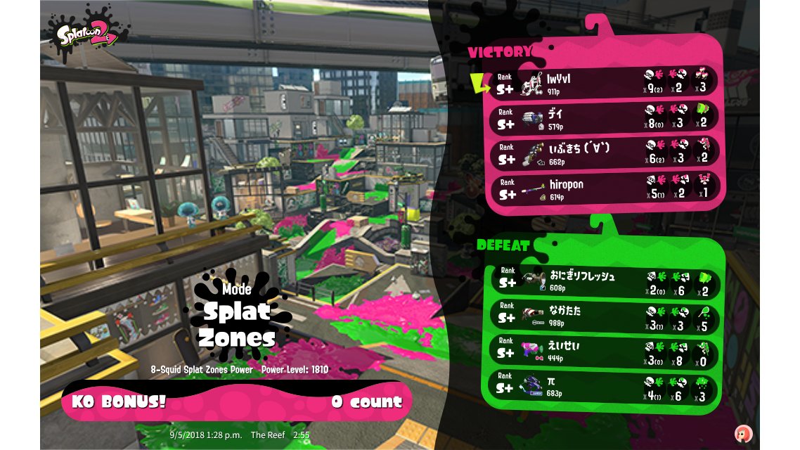| Mode | Splat Zones - Ranked Battle | |||||||||||||||||||||||||||||||||||||