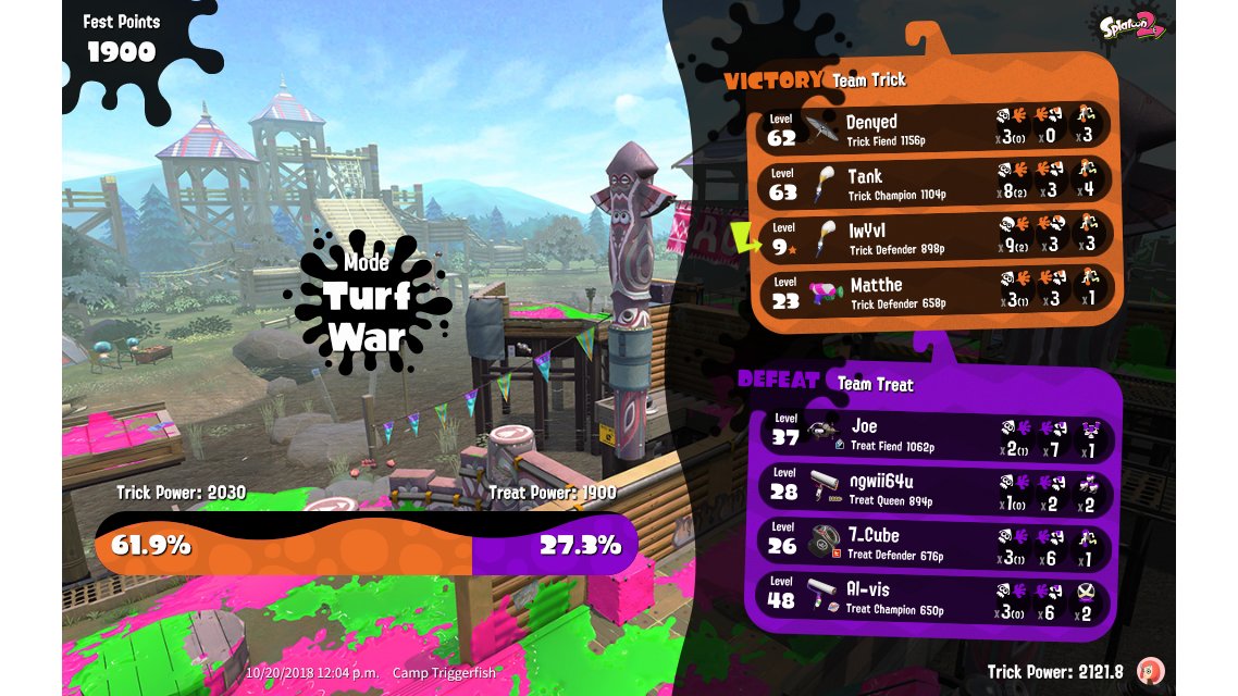 | Their team's splatfest power | 1,900 | ||||||||||||||||||||||||||||||||||