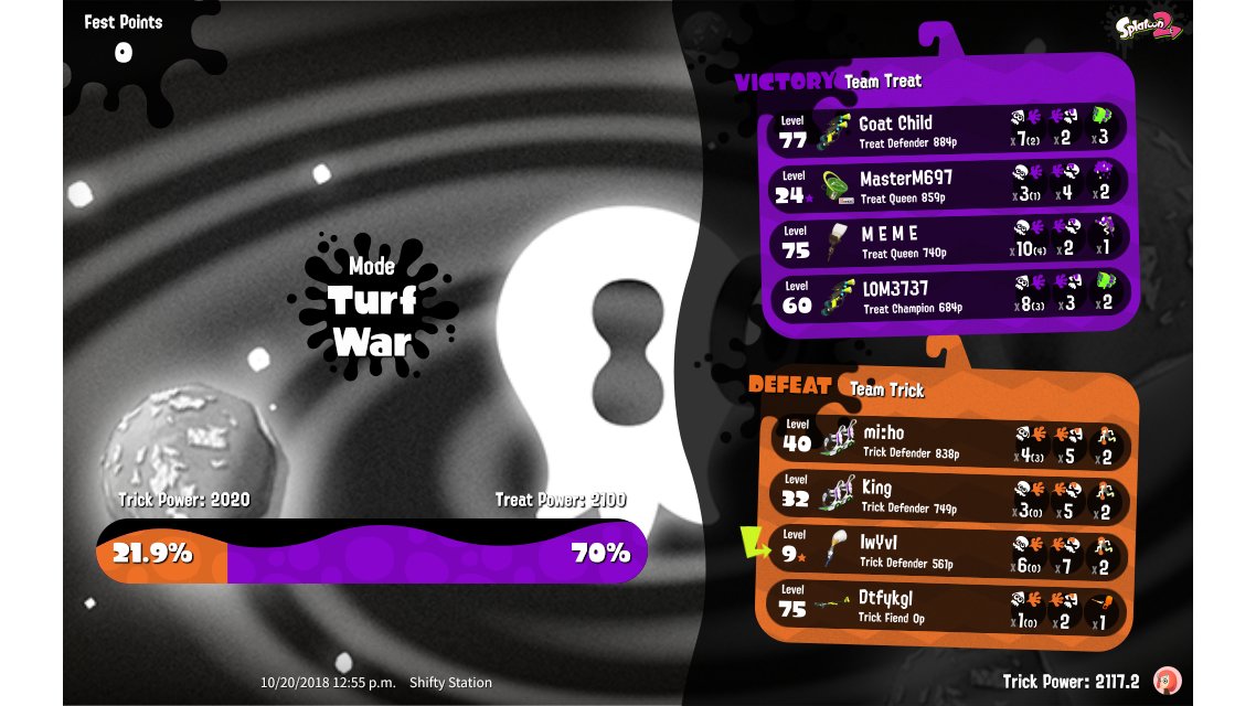| Splatfest Title | Trick Defender 270 → Trick Defender 290 | |||||||||||||||||||||||||||||||||||||