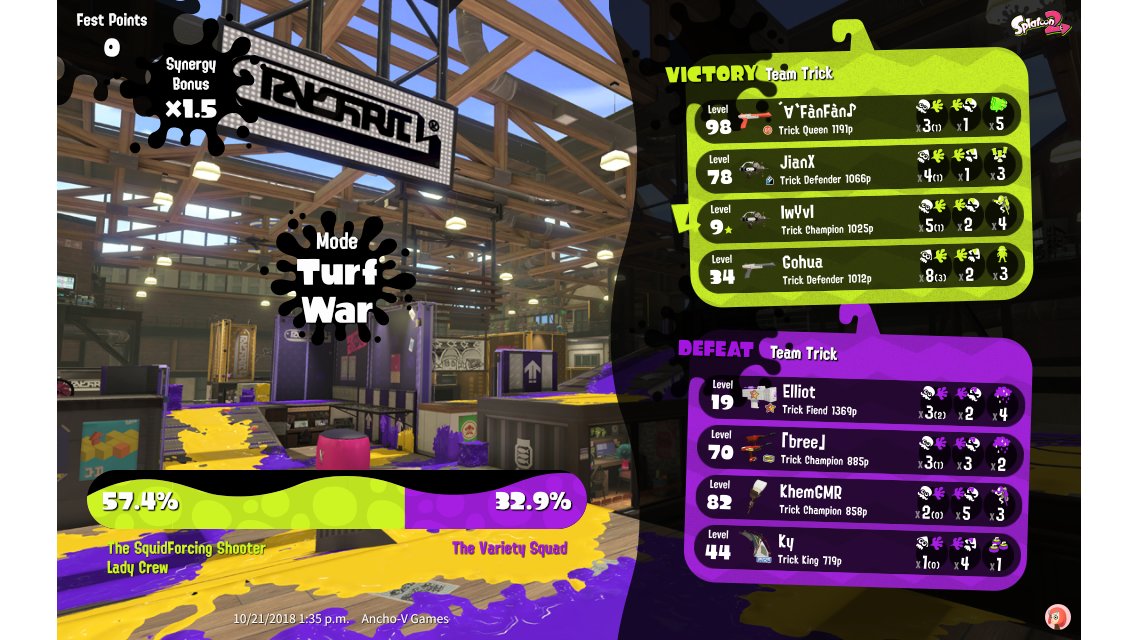 | Mode | Turf War - Splatfest (Normal) | |||||||||||||||||||||||||||||||