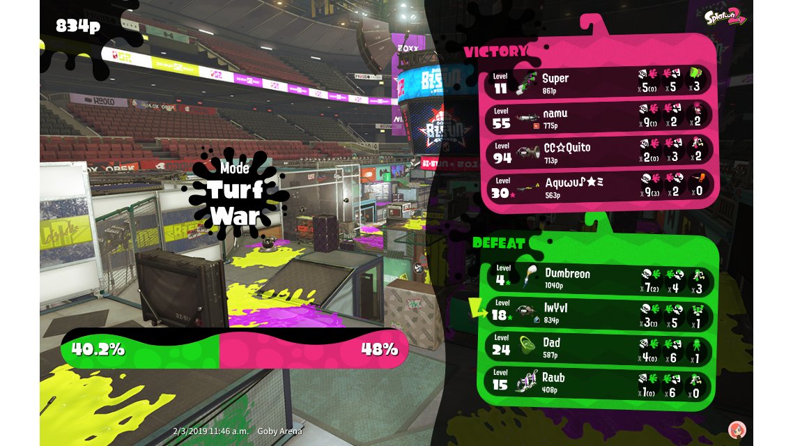 | Mode | Turf War - Regular Battle | |||||||||||||||||||||||||||||||||||||