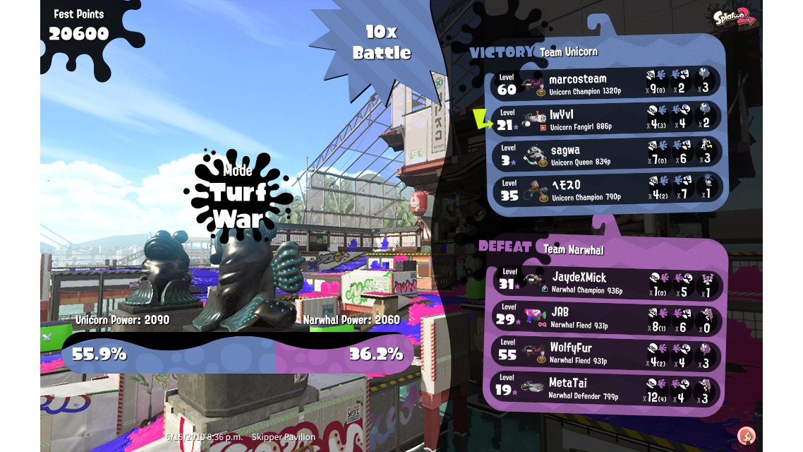 | Splatfest Title | Unicorn Fangirl 20 → Unicorn Fiend 10 | ||||||||||||||||||||||||||||||||||