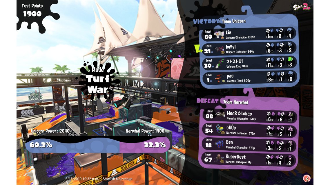 | Splatfest Title | Unicorn Defender 0 → Unicorn Defender 80 | ||||||||||||||||||||||||||||