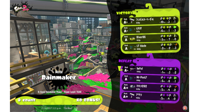 | Name | Weapon | Level | Rank | Inked | k+a/sp | k/d |