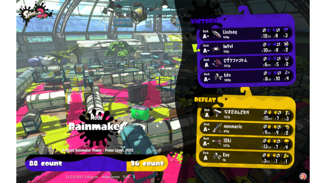 | Name | Weapon | Level | Rank | Inked | k+a/sp | k/d |