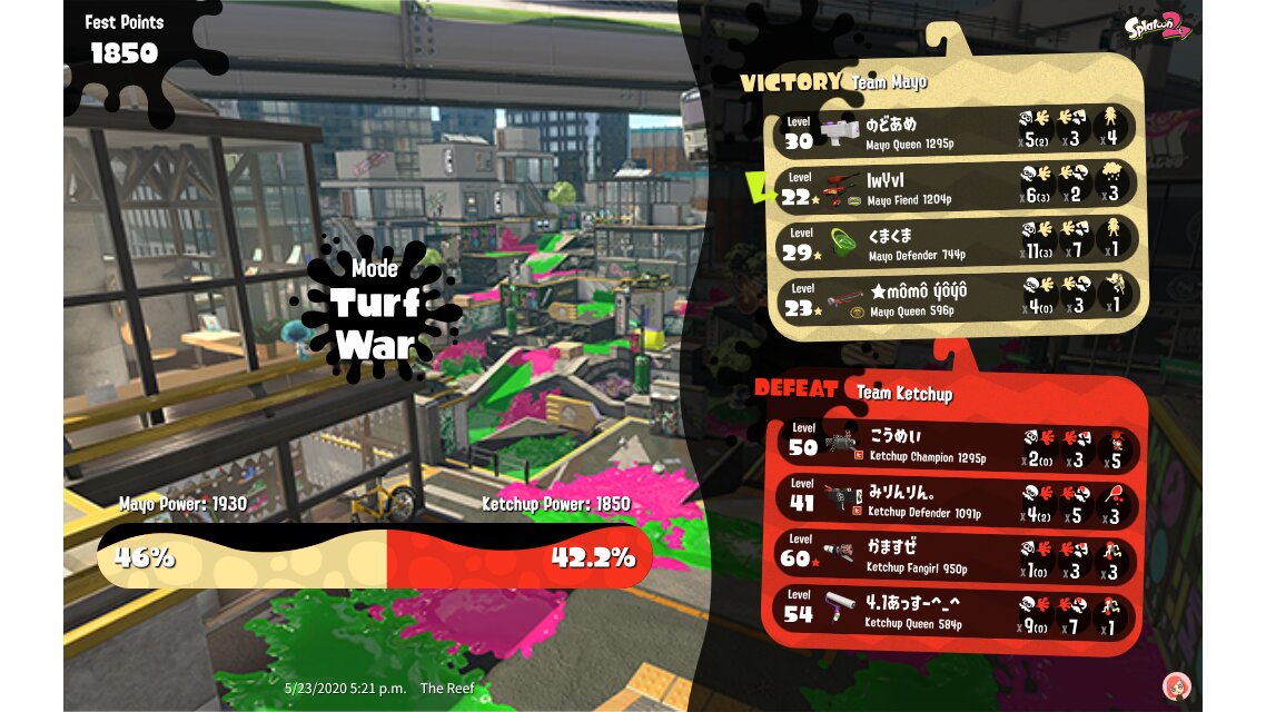 | Their team's splatfest power | 1,850 | |||||||||||||||||||||||||||||||