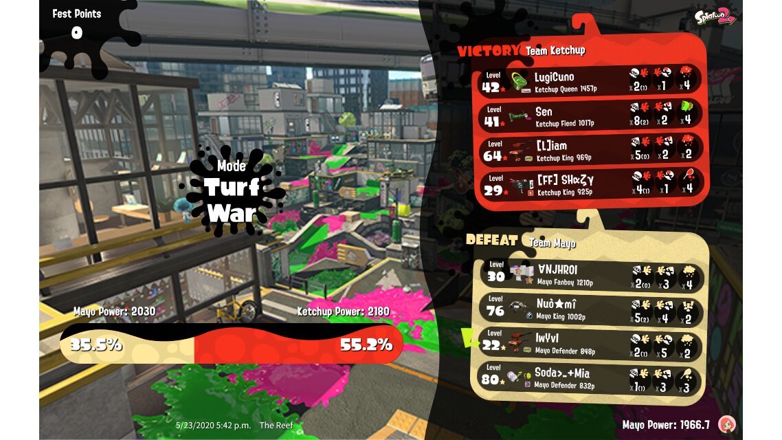 | Mode | Turf War - Splatfest (Pro) | ||||||||||||||||||||||||||||||||||