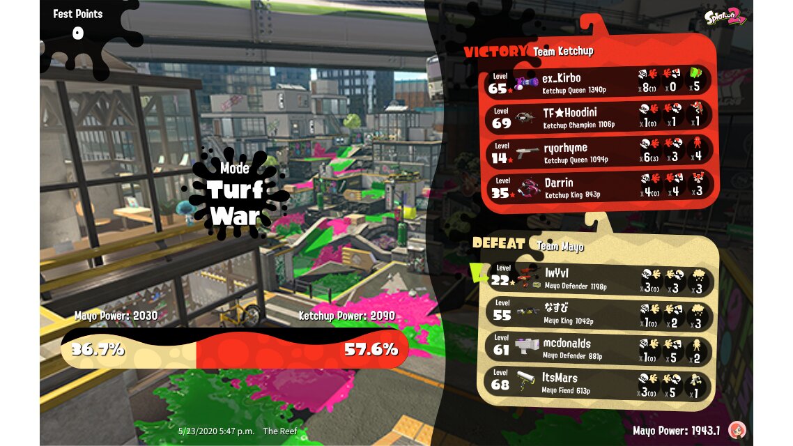 | Mode | Turf War - Splatfest (Pro) | ||||||||||||||||||||||||||||||||||