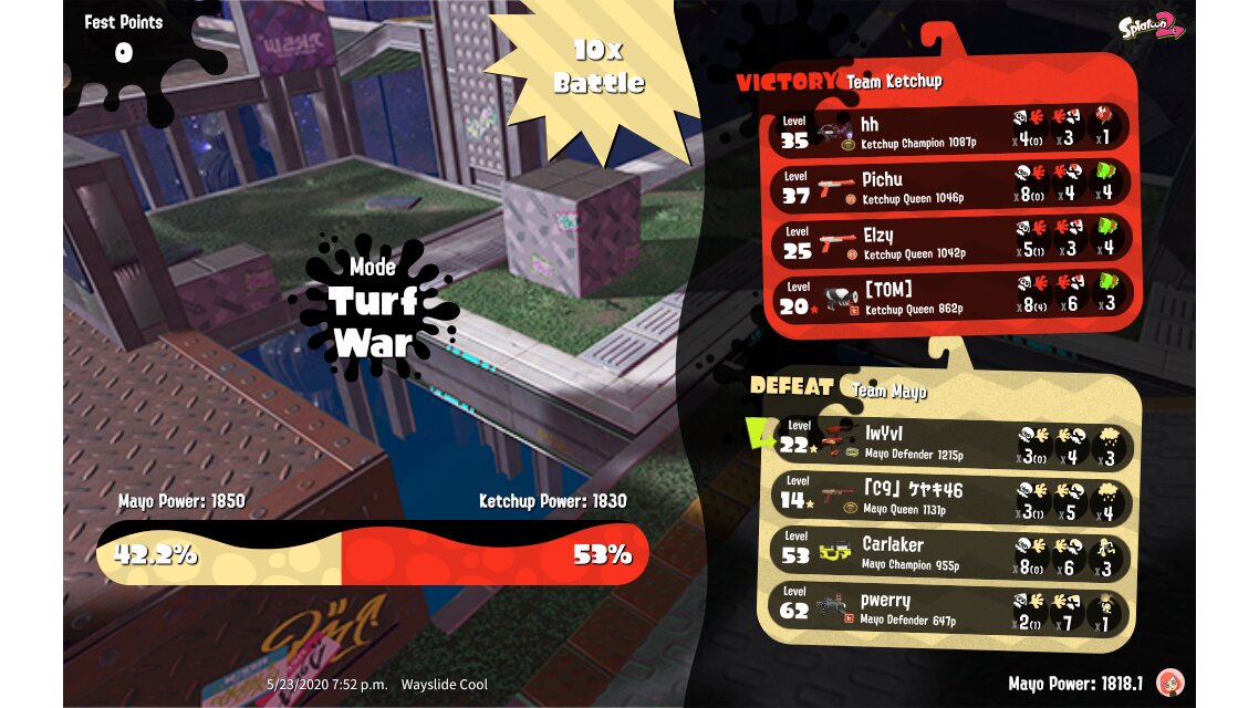 | Mode | Turf War - Splatfest (Pro) | ||||||||||||||||||||||||||||||||||