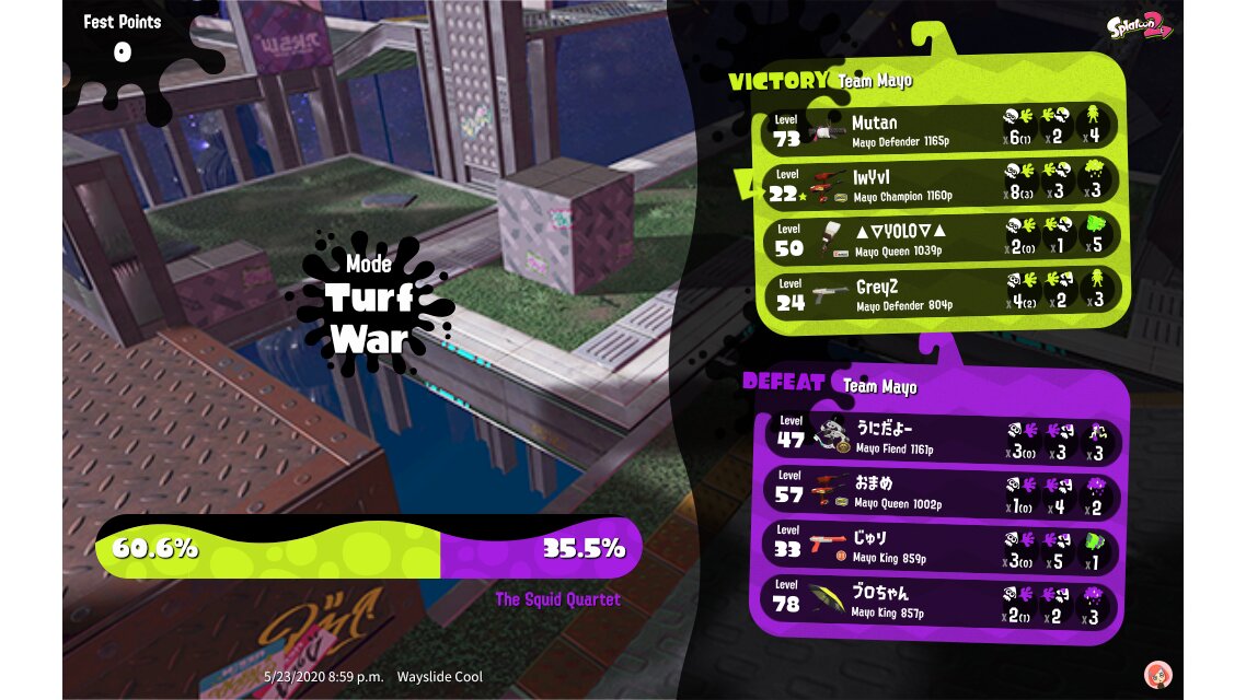 | Mode | Turf War - Splatfest (Normal) | |||||||||||||||||||||||||||||||||||||