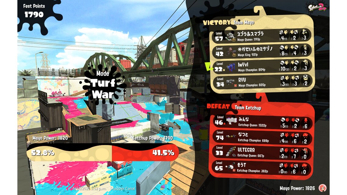 | Their team's splatfest power | 1,790 | |||||||||||||||||||||||||||||||||||||