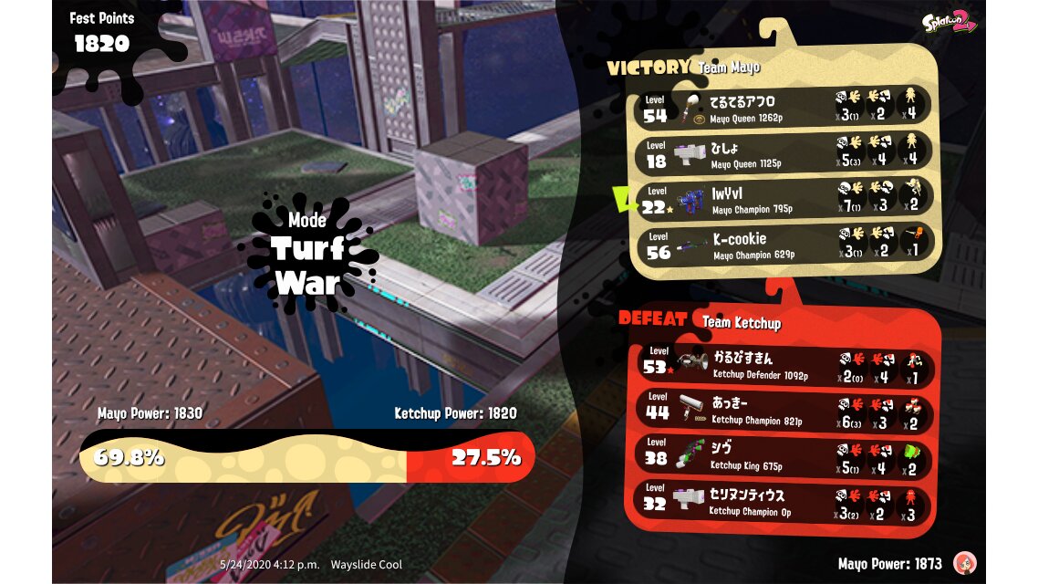 | Splatfest Title | Mayo Champion 888 → Mayo Champion 968 | |||||||||||||||||||||||||||||||||||||