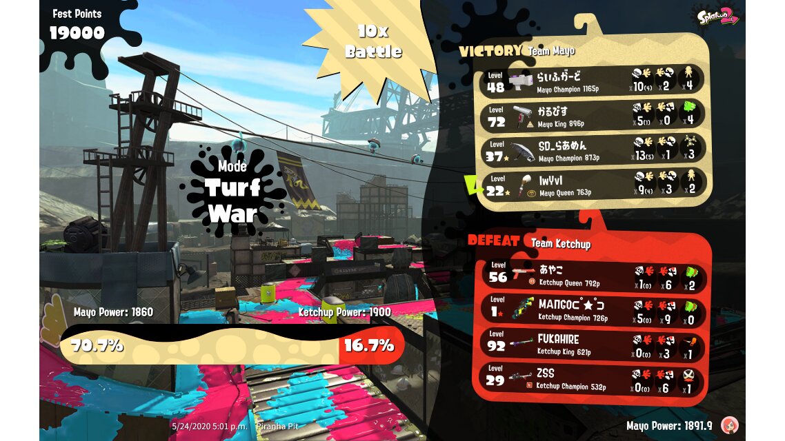 | Splatfest Title | Mayo Queen → Mayo Queen | |||||||||||||||||||||||||||||||||||||