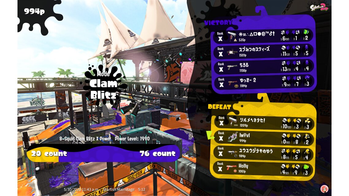 | Mode | Clam Blitz - Ranked Battle | |||||||||||||||||||||||||||||||||||||