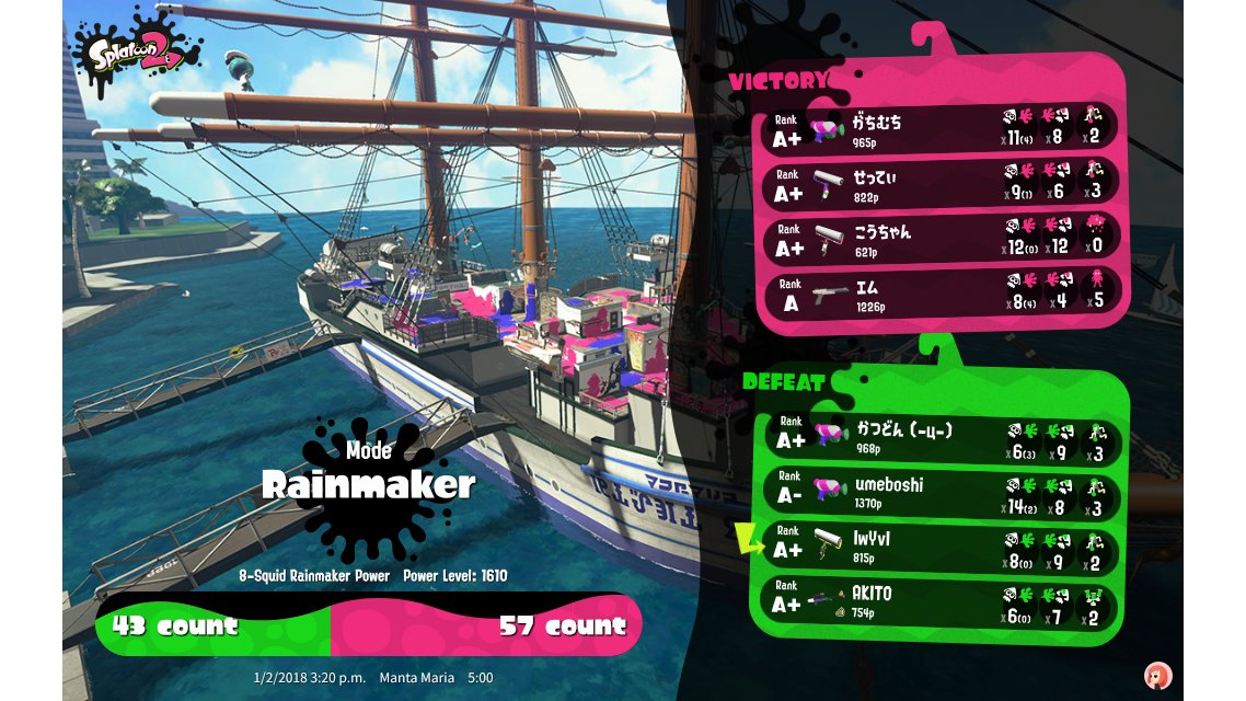 | Name | Weapon | Level | Rank | Inked | k+a/sp | k/d |