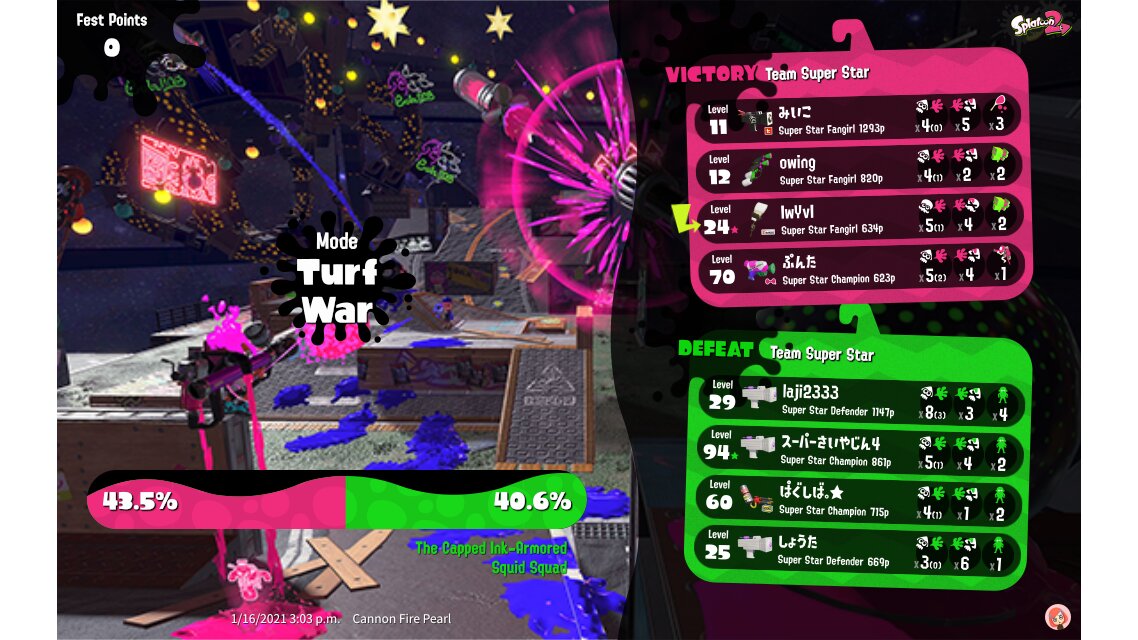 | Splatfest Title | Super Star Fangirl 40 → Super Star Fiend 0 | |||||||||||||||||||||||||
