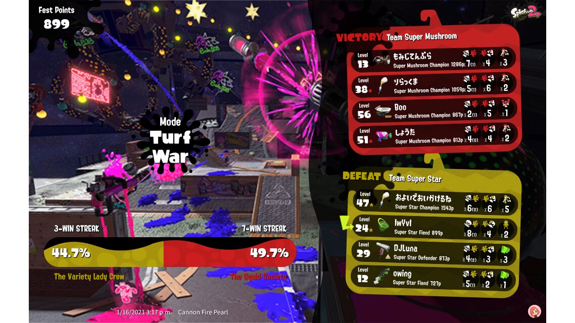 | Splatfest Title | Super Star Fiend 66 → Super Star Fiend 86 | |||||||||||||||||||||||||||||||
