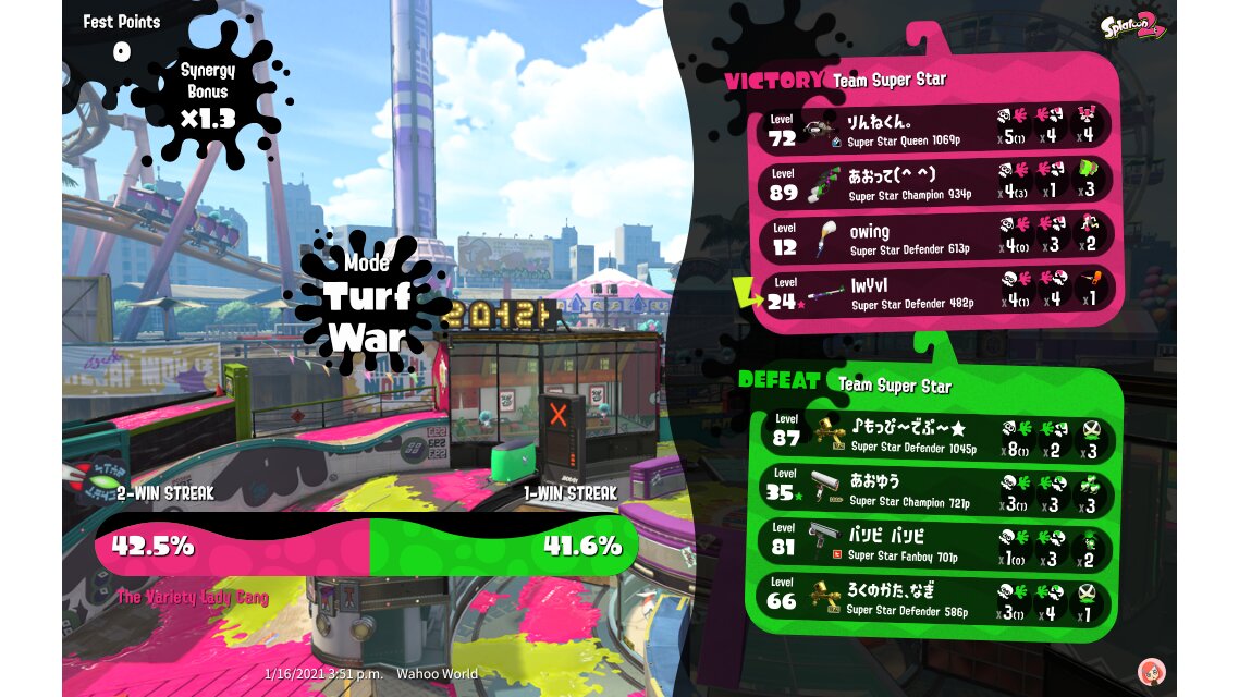 | Splatfest Title | Super Star Defender 143 → Super Star Defender 234 | |||||||||||||||||||||||||||||||