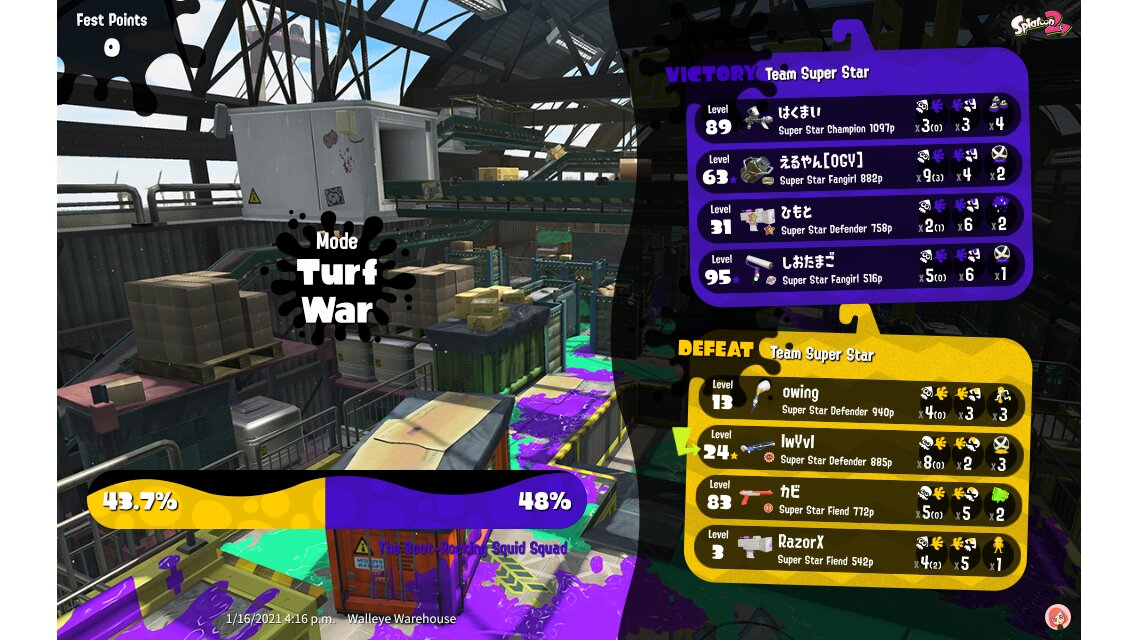 | Mode | Turf War - Splatfest (Normal) | ||||||||||||||||||||||||||||||||||