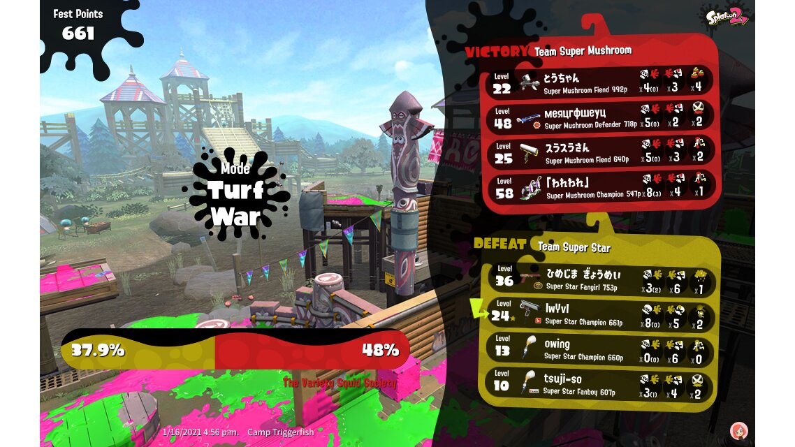 | Mode | Turf War - Splatfest (Normal) | ||||||||||||||||||||||||||||||||||