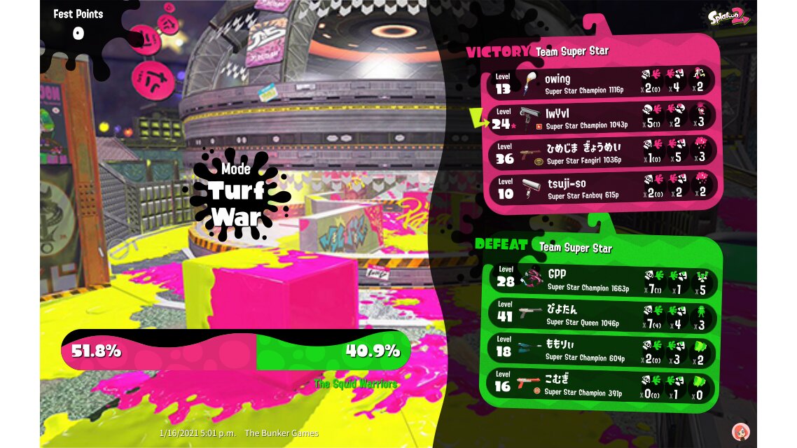 | Mode | Turf War - Splatfest (Normal) | ||||||||||||||||||||||||||||||||||