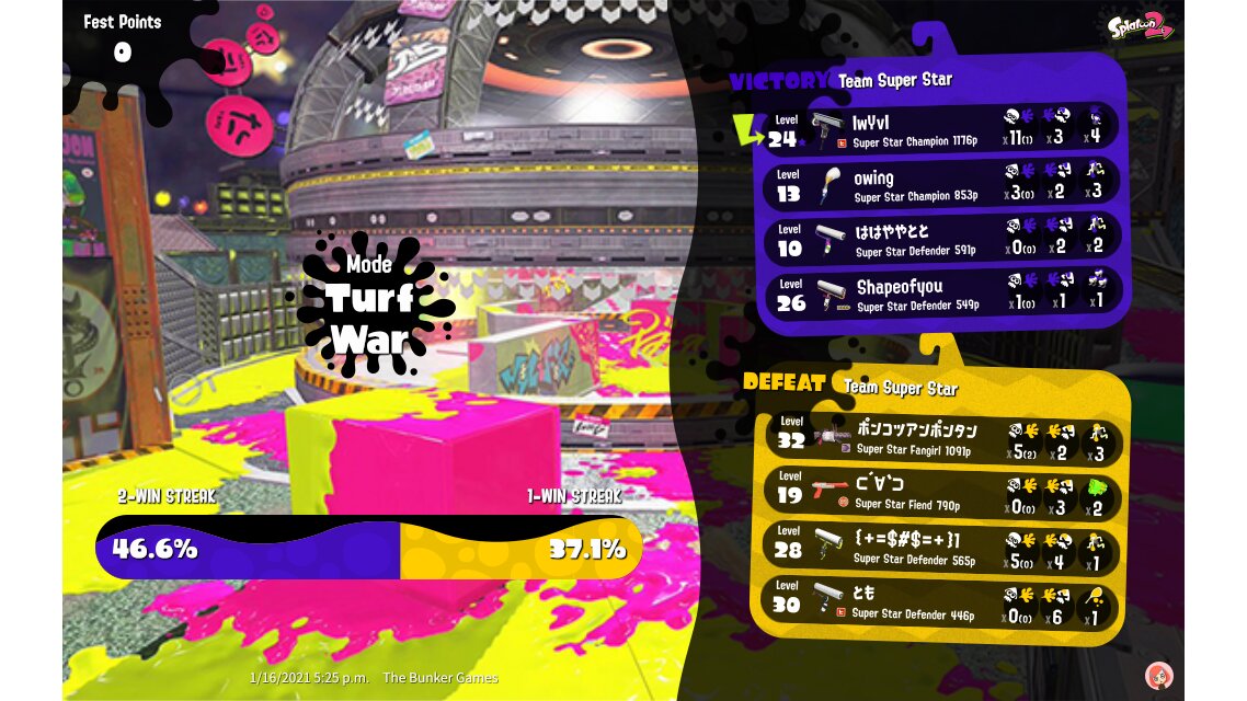 | Mode | Turf War - Splatfest (Normal) | ||||||||||||||||||||||||||||||||||