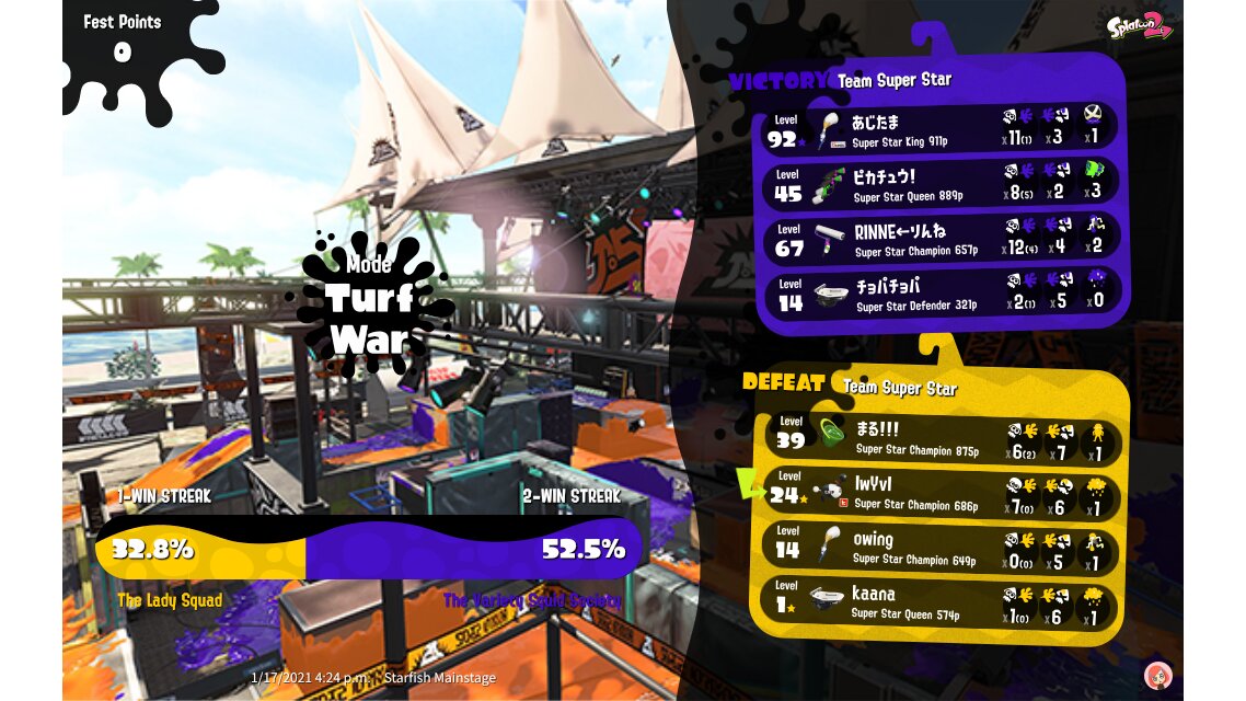| Mode | Turf War - Splatfest (Normal) | ||||||||||||||||||||||||||||||||||||||||