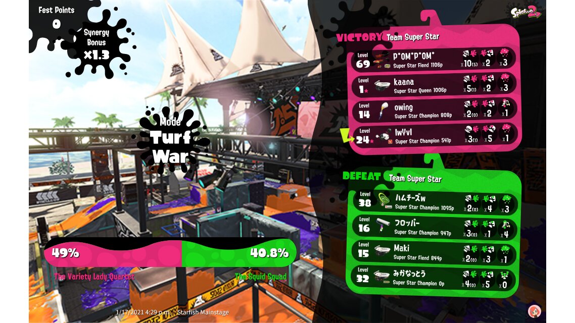 | Mode | Turf War - Splatfest (Normal) | ||||||||||||||||||||||||||||||||||||||||