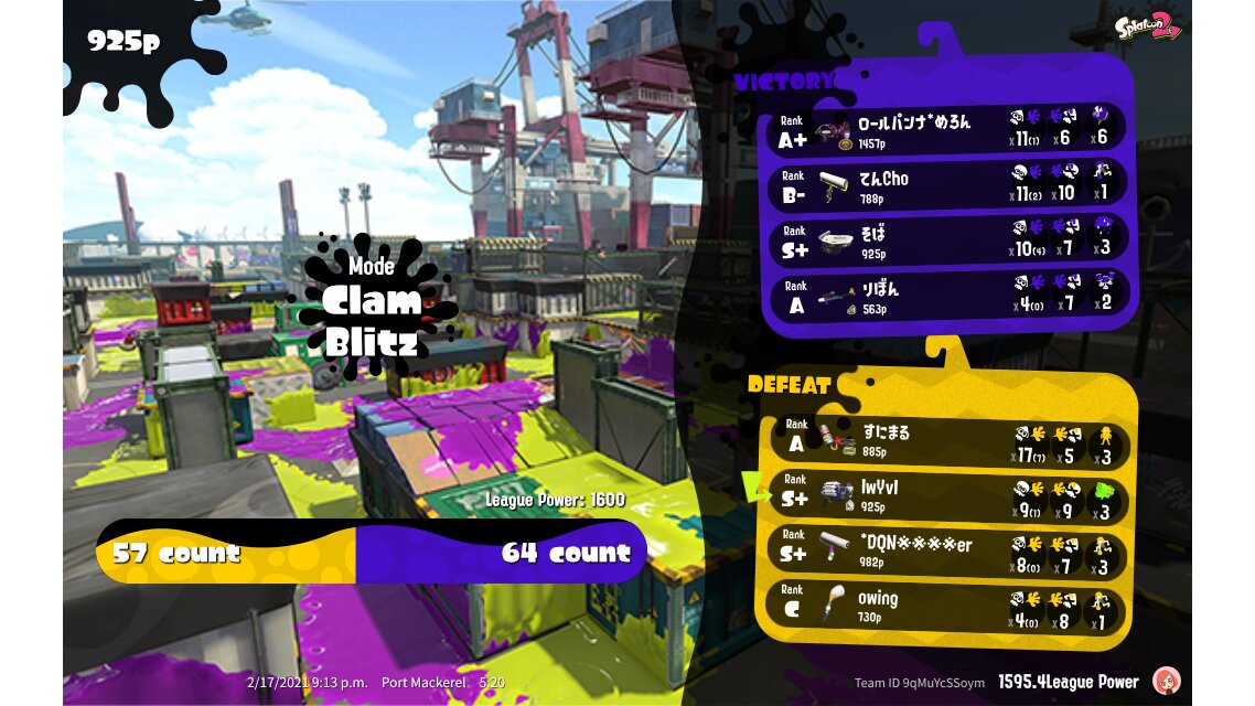 | Mode | Clam Blitz - League Battle (Twin) | ||||||||||||||||||||||||||||||||||||||||