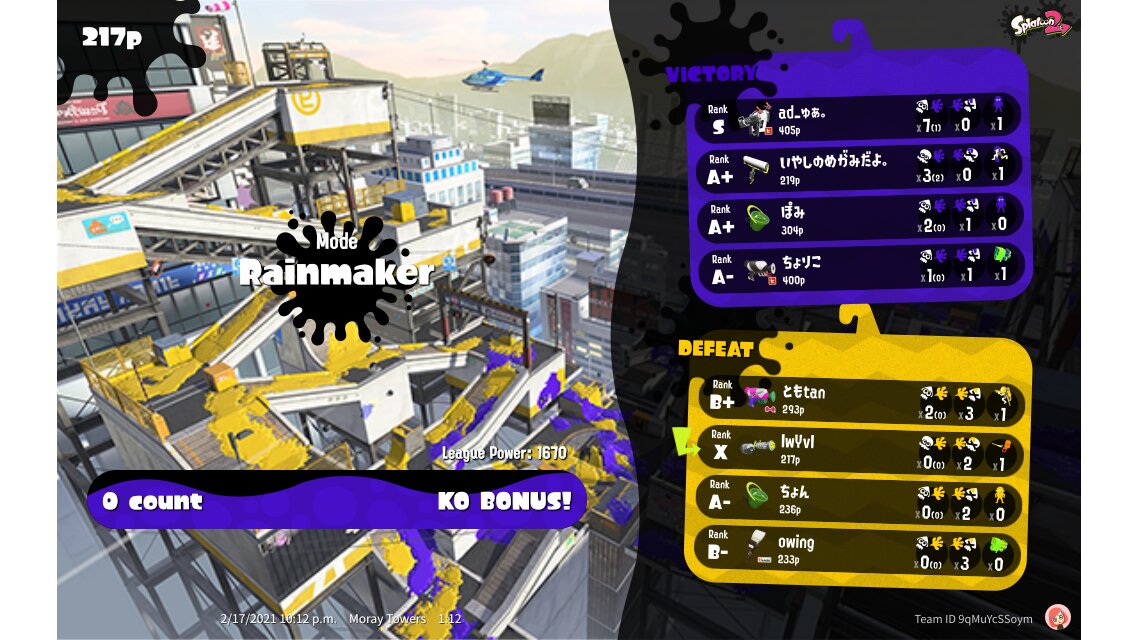 | Mode | Rainmaker - League Battle (Twin) | ||||||||||||||||||||||||||||||||||
