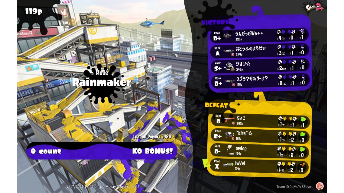 | Mode | Rainmaker - League Battle (Twin) | |||||||||||||||||||||||||||||||||||||