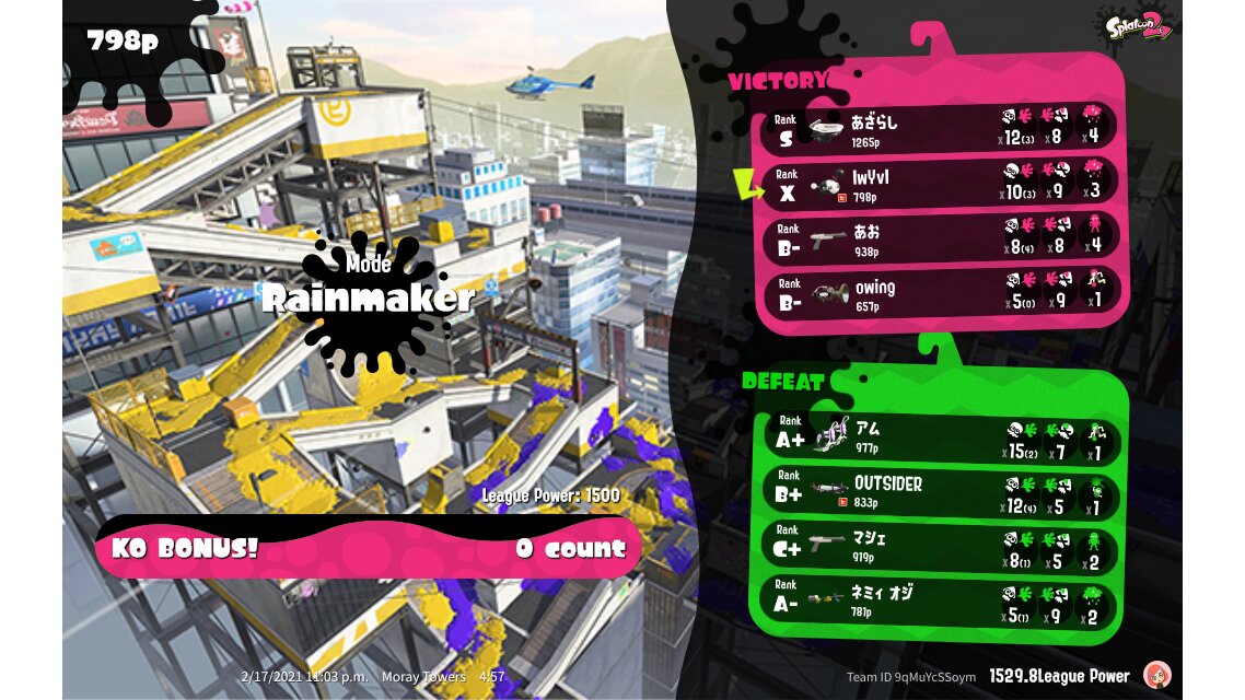 | Mode | Rainmaker - League Battle (Twin) | |||||||||||||||||||||||||||||||||||||