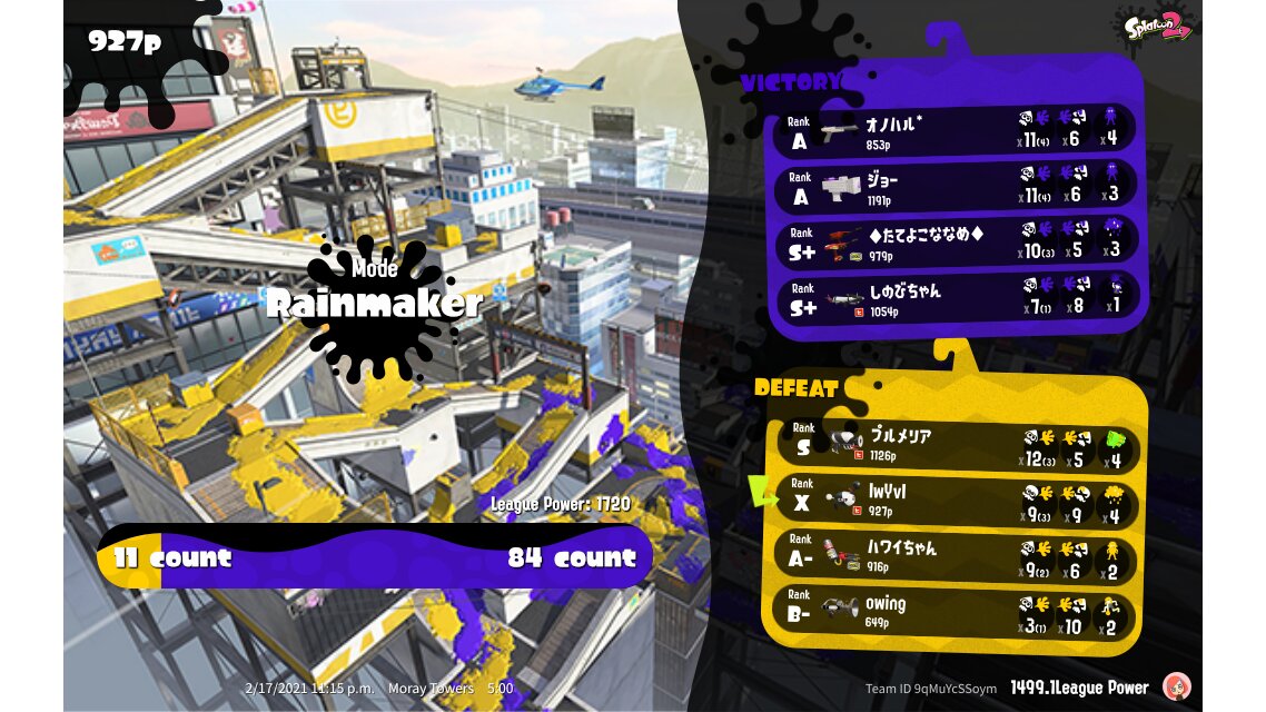 | Mode | Rainmaker - League Battle (Twin) | |||||||||||||||||||||||||||||||||||||