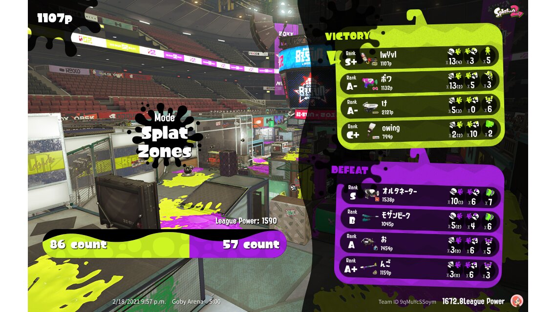 | Mode | Splat Zones - League Battle (Twin) | |||||||||||||||||||||||||