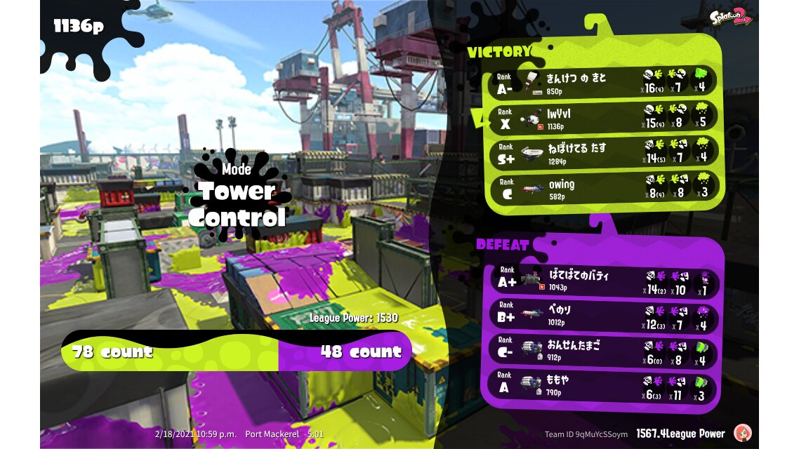 | Mode | Tower Control - League Battle (Twin) | |||||||||||||||||||||||||||||||||||||