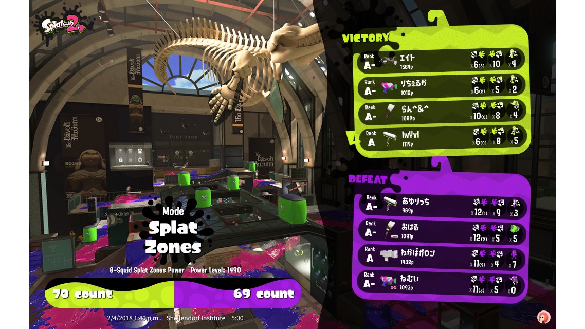 | Mode | Splat Zones - Ranked Battle |