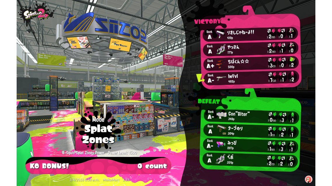 | Mode | Splat Zones - Ranked Battle |