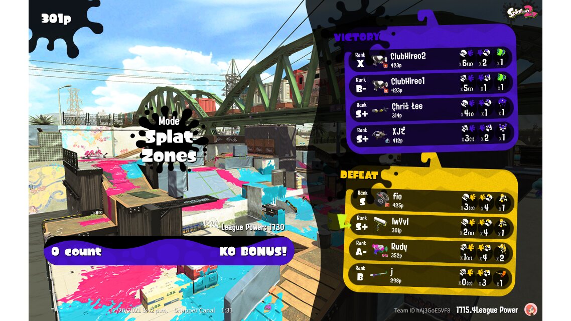 | Mode | Splat Zones - League Battle (Twin) | ||||||||||||||||||||||||||||