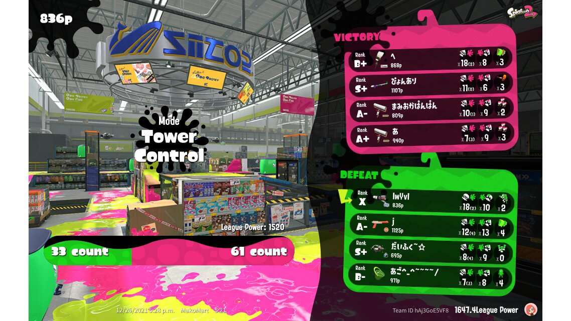 | Mode | Tower Control - League Battle (Twin) | ||||||||||||||||||||||||||||||||||