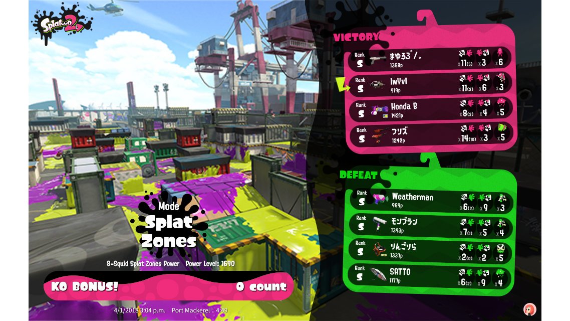 | Name | Weapon | Level | Rank | Inked | k+a/sp | k/d |