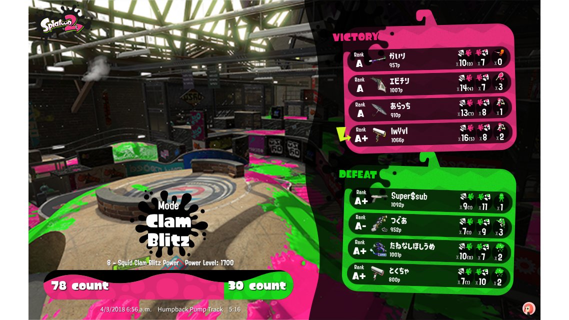 | Name | Weapon | Level | Rank | Inked | k+a/sp | k/d |