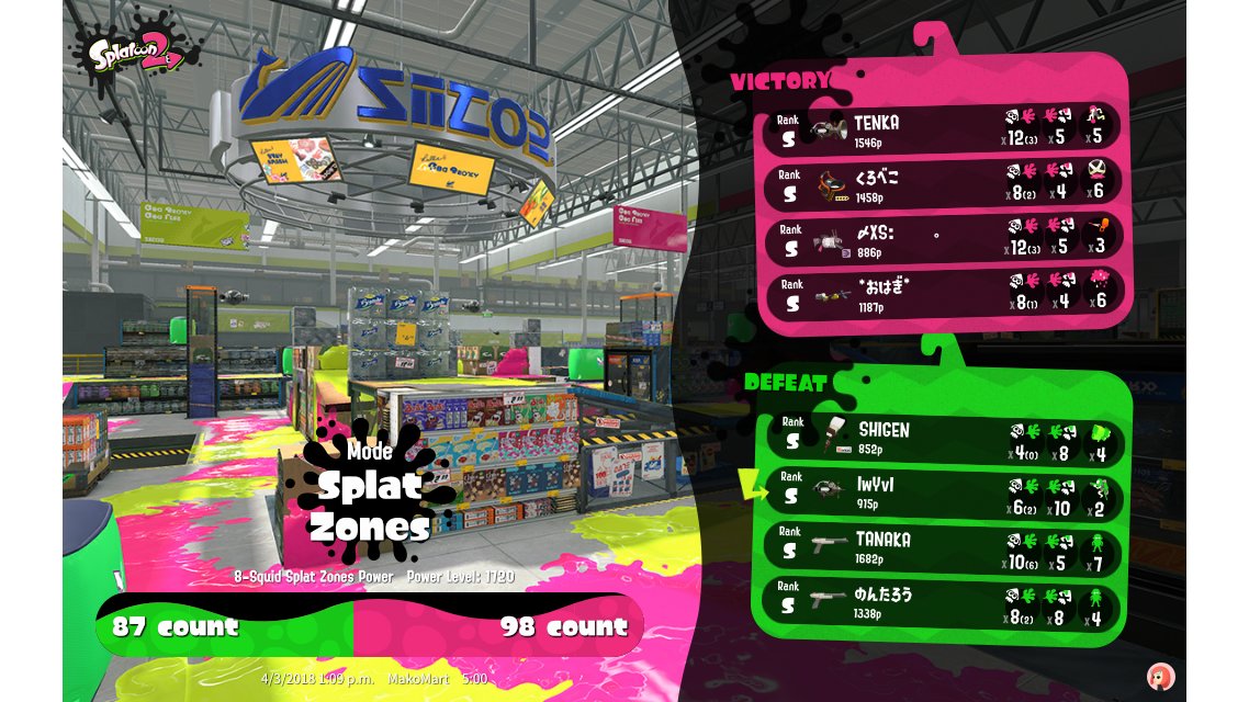 | Mode | Splat Zones - Ranked Battle |