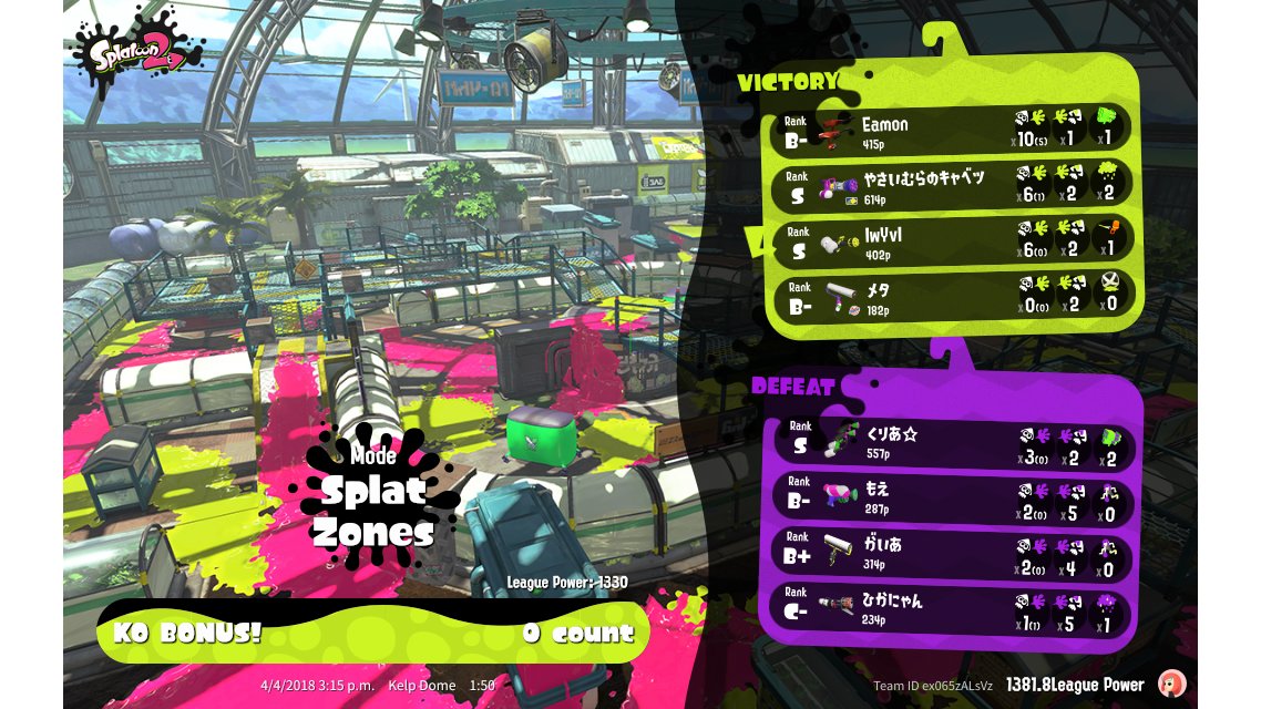 | Mode | Splat Zones - League Battle (Twin) |