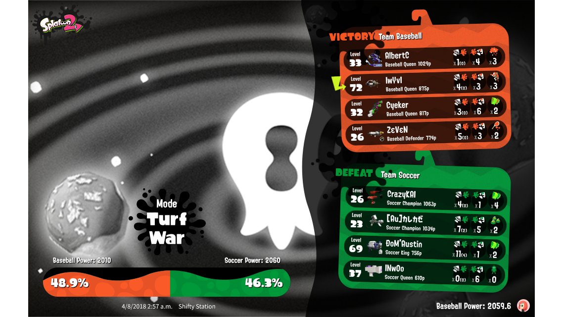 | Name | Weapon | Level | Points | k+a/sp | k/d |