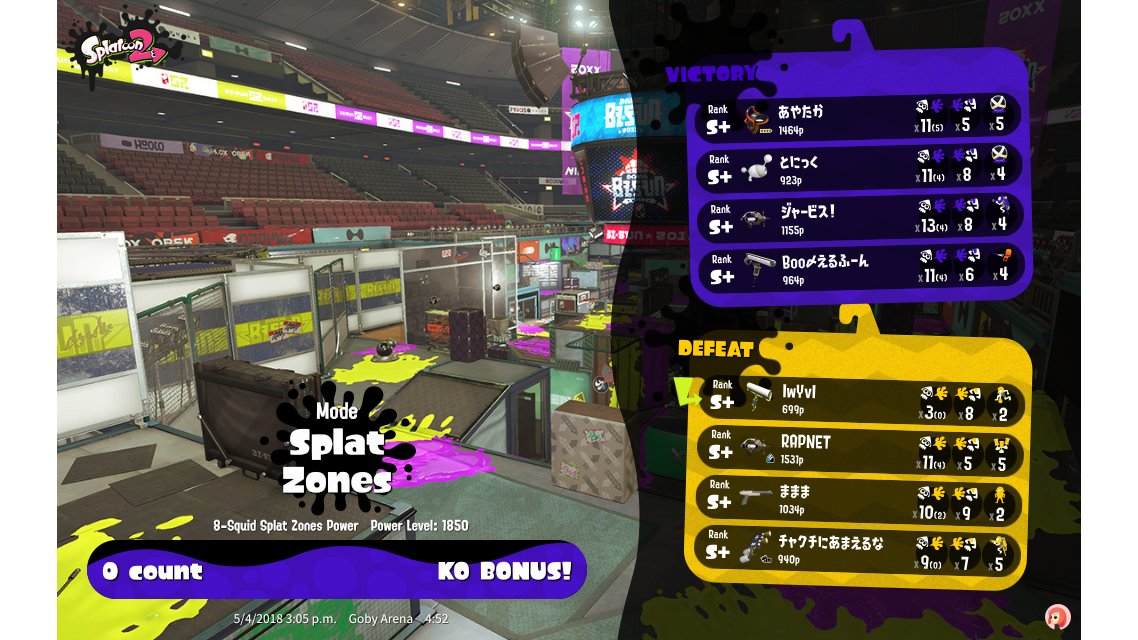 | Mode | Splat Zones - Ranked Battle | ||||||||||||||||||||||||||||