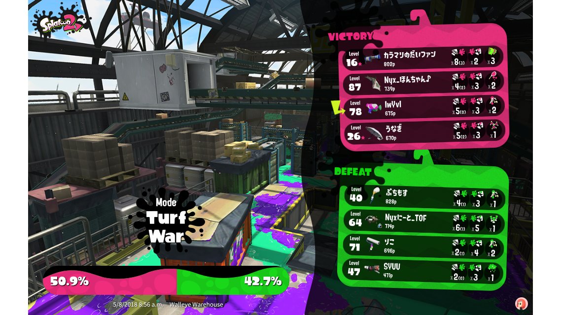 | Mode | Turf War - Regular Battle | |||||||||||||||||||||||||||||||