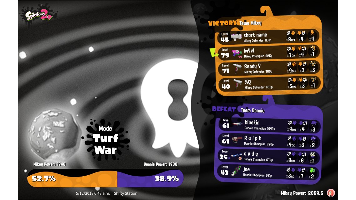 | Splatfest Power | 2,069.6 | ||||||||||||||||||||||||||||