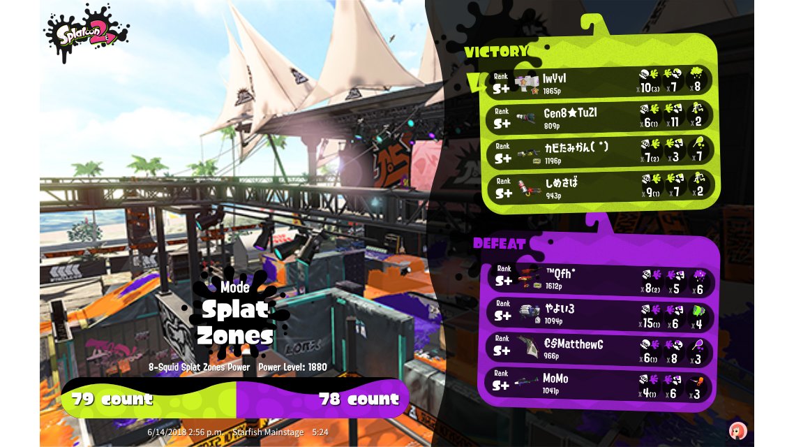 | Mode | Splat Zones - Ranked Battle | ||||||||||||||||||||||||||||||||||||||||